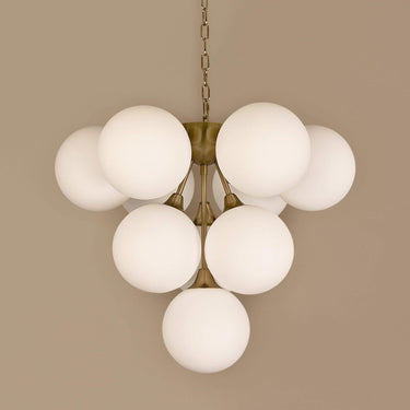 Добавьте ретро-вдохновение в ваш стиль декорирования с помощью этой люстры в стиле модерн середины века. Изготовленная с сияющими белыми шарообразными плафонами и отделкой из старинной латуни, эта потрясающая люстра — прекрасный способ осветить любое пространство от фойе до гостиной или столовой.