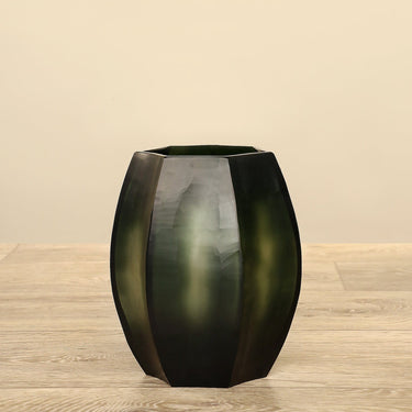 Прочная и современная эта ваза из выдувного стекла ручной работы отлично подходит для хранения зелени, веток или цветов. Темно-зеленая отделка легко сочетается с другими цветами, а выдувная угловатая форма и стиль привносят современную перспективу для свежего вида.