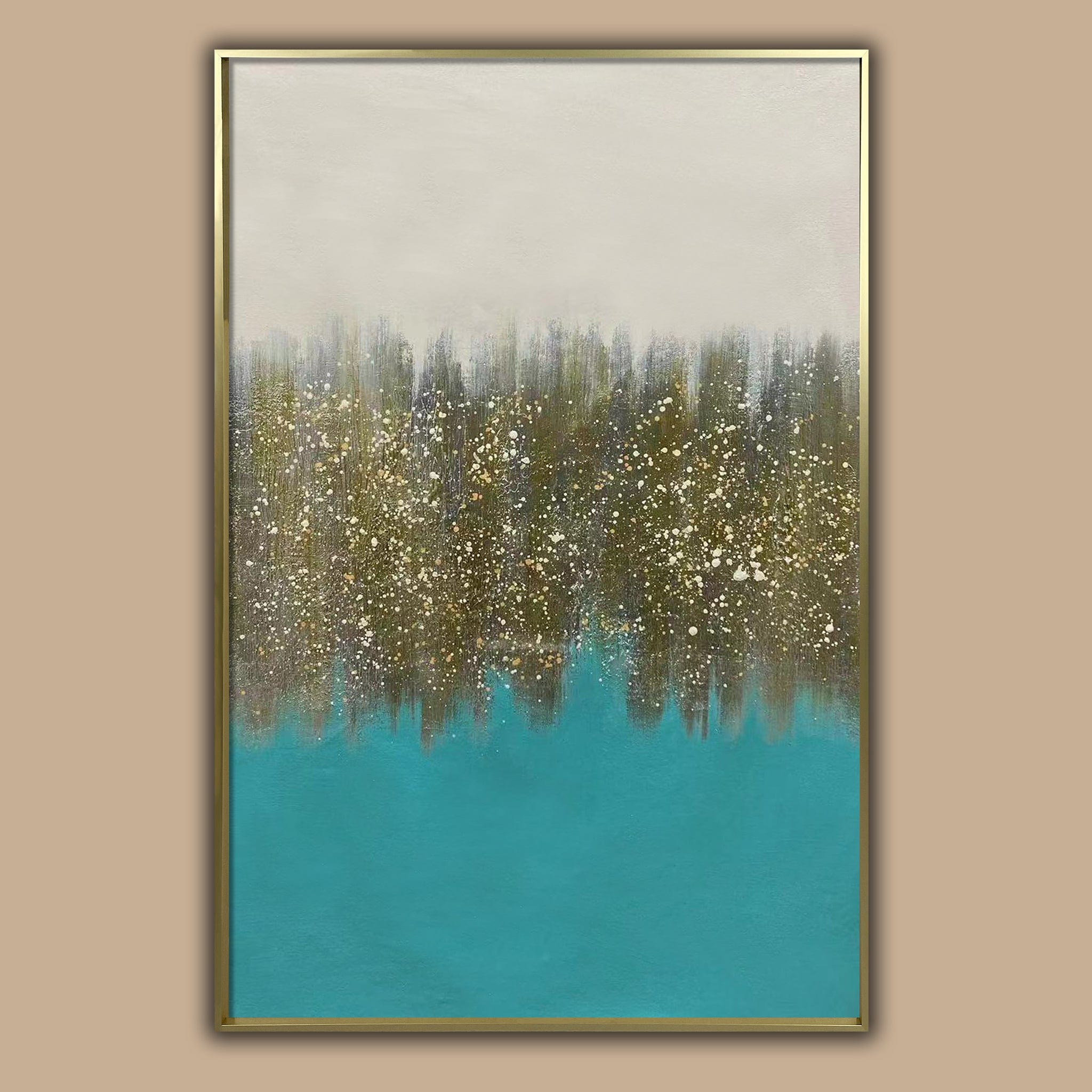 Эта абстрактная картина, написанная маслом, заключена в элегантную раму цвета шампанского, создающую изысканный контраст с яркими оттенками композиции. Современный стиль и мастерское использование цвета ярко выражены в этой прекрасной, выполненной вручную картине маслом, что делает её идеальным дополнением к интерьеру в любом стиле.