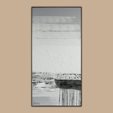 Эта абстрактная картина, написанная маслом, заключена в элегантную чёрную раму, создающую изысканный контраст с графическими тонами композиции. Современный стиль и умелое использование чёрно-белой гаммы ярко выражены в этой прекрасно выполненной вручную картине, что делает её идеальным дополнением к интерьеру в различных стилях.