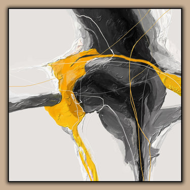 Эта современная работа выделяется из толпы. Эта работа, вдохновлённая 60-ми, яркая и яркая, но с современным оттенком. Нейтральные чёрный и белый цвета придают ей глубину и контраст. Жёлтый цвет станет ярким акцентом в любой комнате.