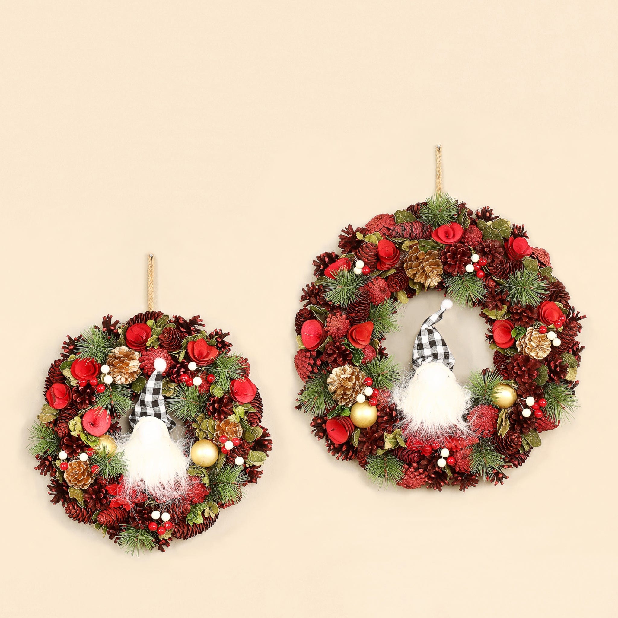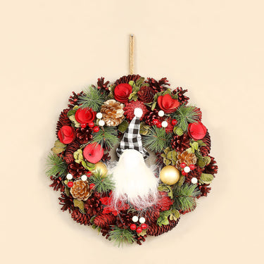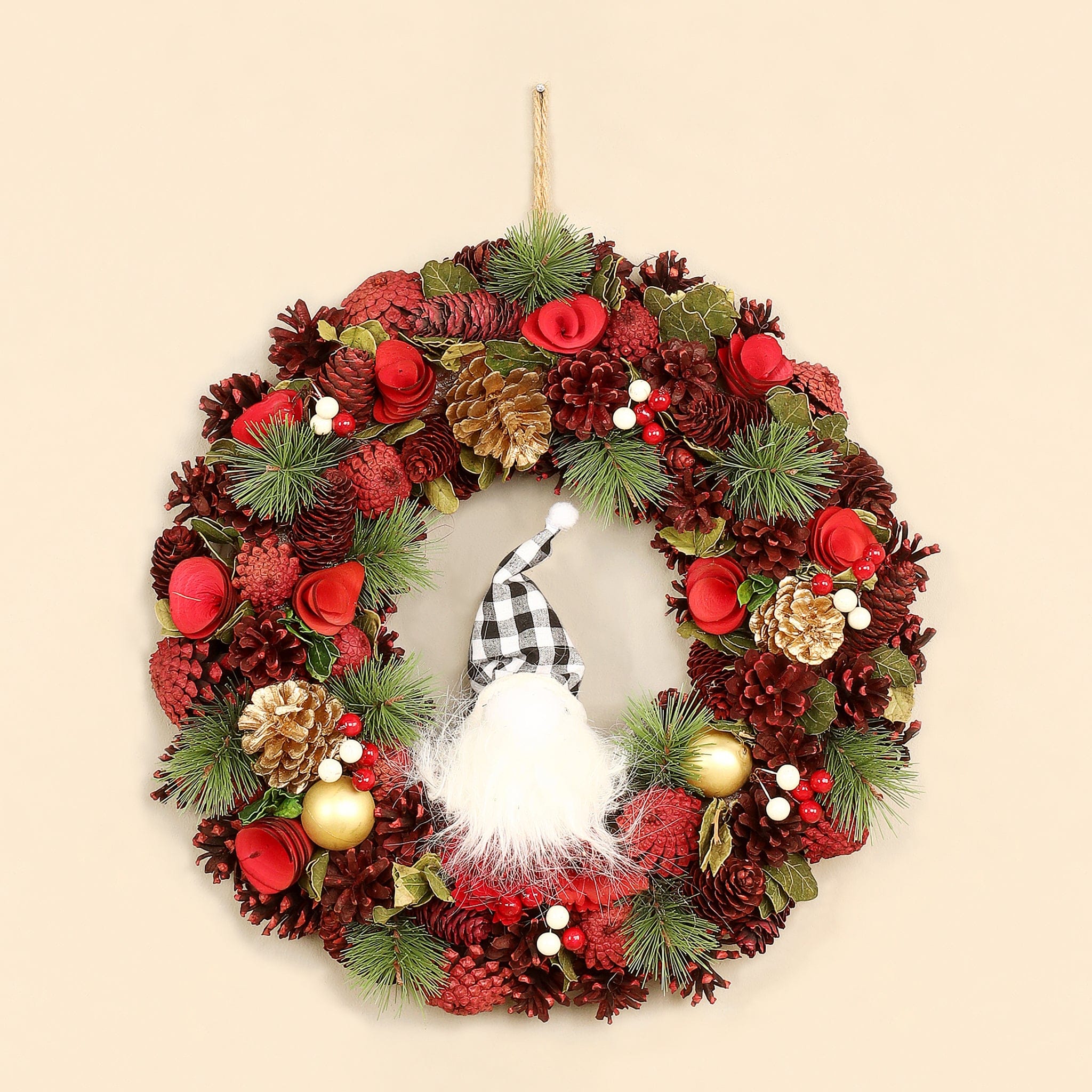 Этот очаровательный праздничный венок привнесет восхитительный штрих очарования в ваш декор. Переполненный искусственными цветами, шишками и пышной зеленью, он передает суть сезона с естественной элегантностью. В основе этого венка — бородатый гном, одетый в классическую клетку буйвола, что добавляет причудливого и уютного ощущения. Этот венок идеально подходит для создания теплой и уютной атмосферы, он представляет собой праздничное сочетание деревенского очарования и игривого праздничного духа, что делает его неотразимым дополнением к вашему дому.