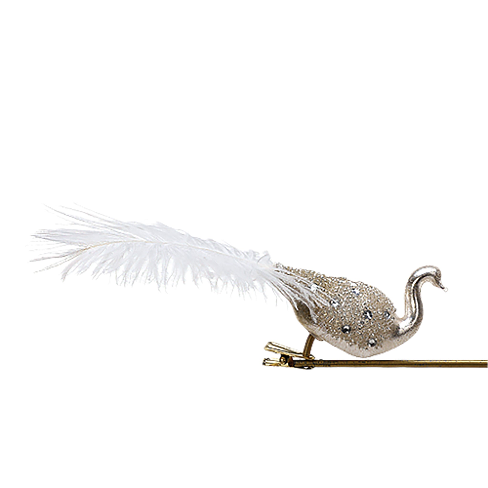 Изготовленное из блесток и нежного перистого оперения, это украшение в виде птицы поставляется в наборе из 12 штук, чтобы придать ослепительный вид вашему праздничному декору. Расположенное на зажиме, это прекрасное рождественское украшение в виде птицы можно поместить на ветку для очаровательного штриха.