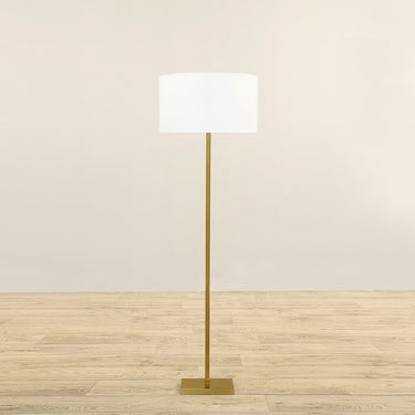 Прочное основание удерживает этот элегантный торшер на месте для использования в любой комнате. Изготовленный из металла с современным белым тканевым абажуром, этот торшер является универсальным приспособлением для красивого освещения и шикарного стиля.