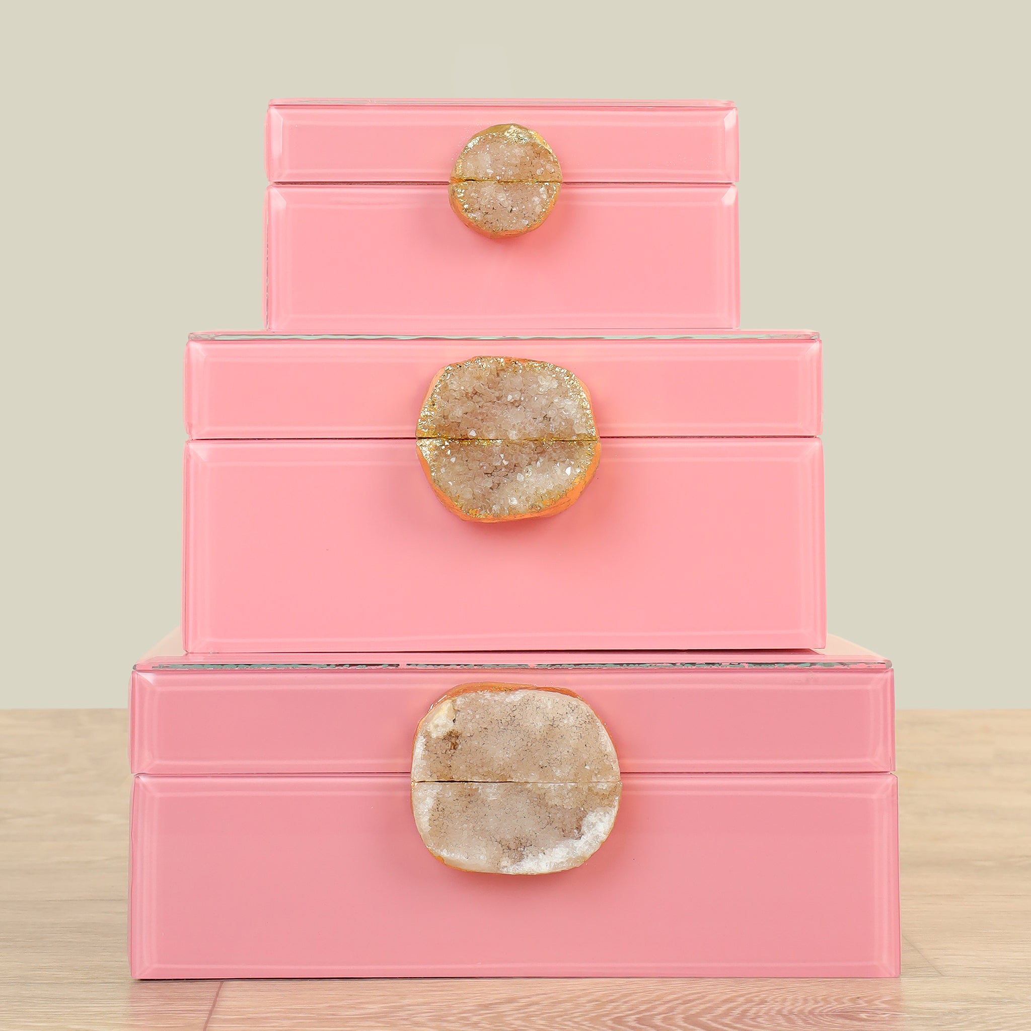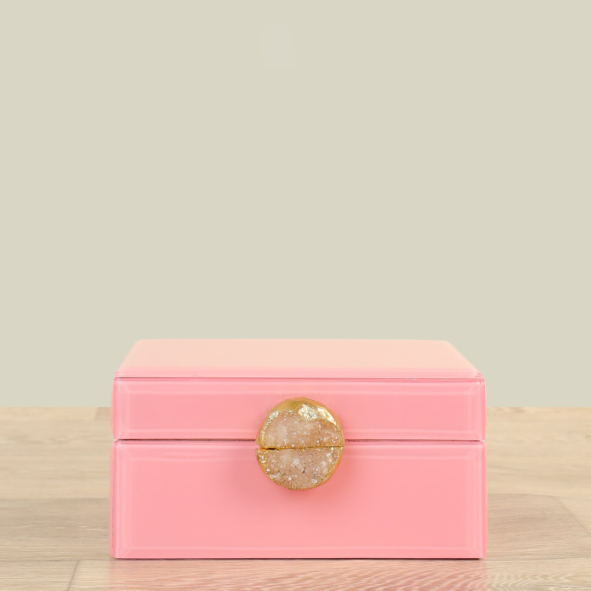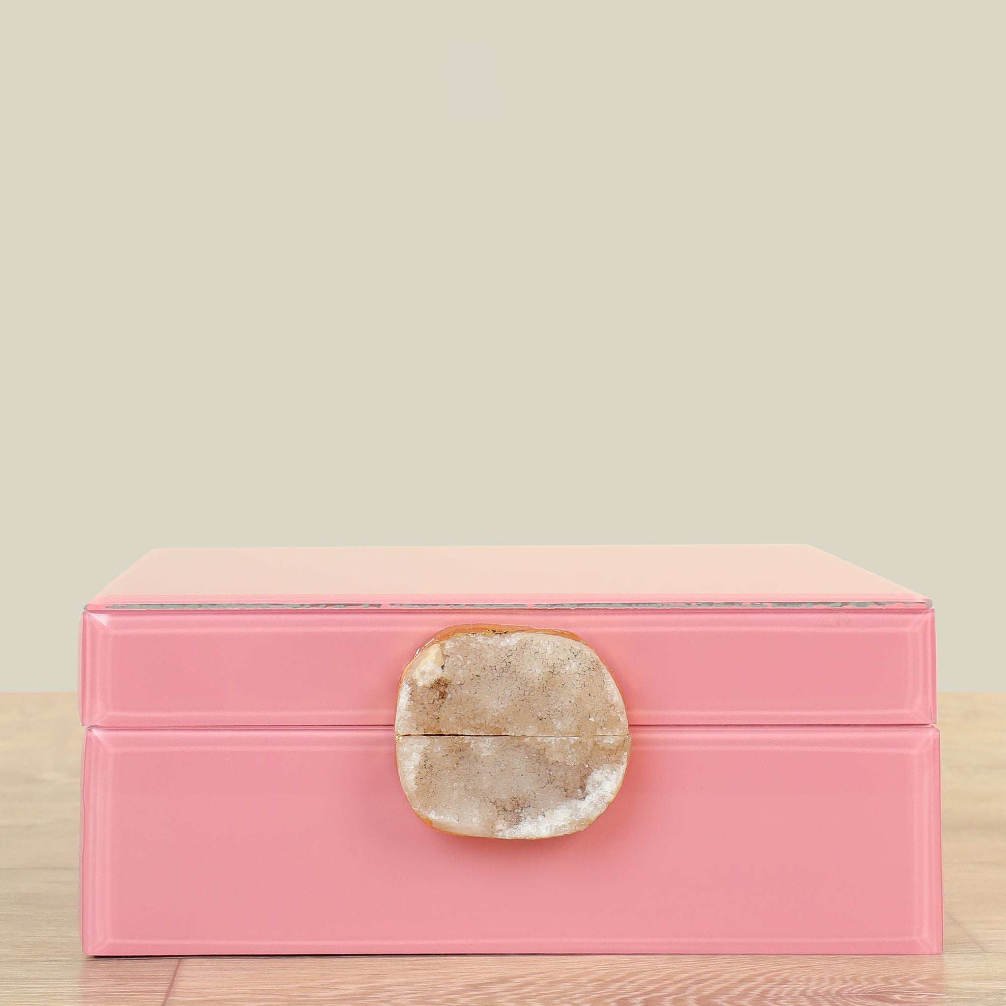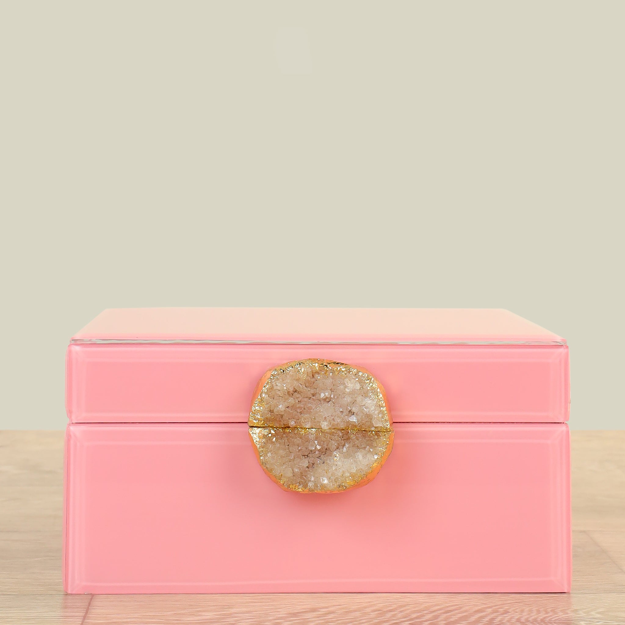 Храните свои драгоценности в такой же великолепной шкатулке для украшений. Эта очаровательная нежно-розовая шкатулка для украшений сочетает в себе эстетику и функциональность благодаря уникальной застёжке-геоде, которая делает её особенной. Независимо от того, поставите ли вы её на полку или украсите туалетный столик, она обеспечит удобное хранение ваших драгоценностей.
