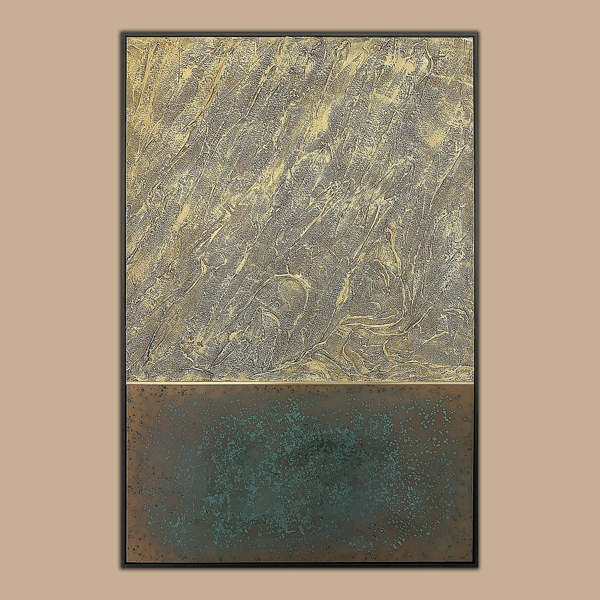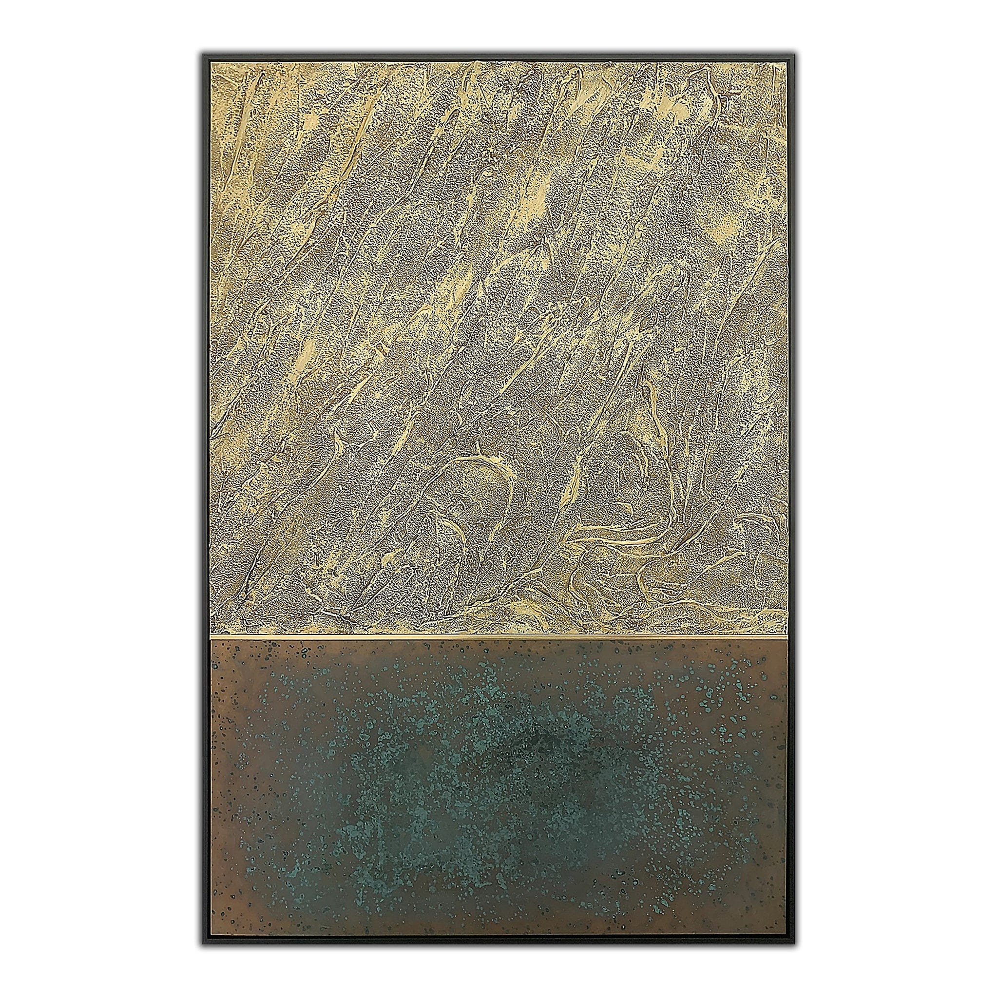 Подчеркните свою эстетику этим произведением искусства в чёрной раме. Холст «оживает» благодаря жидкому металлу, подставке для картины и золотой Т-образной перекладине, создавая динамичный визуальный образ, что в итоге приводит к созданию современного произведения искусства, завораживающего своей глубиной и композицией.