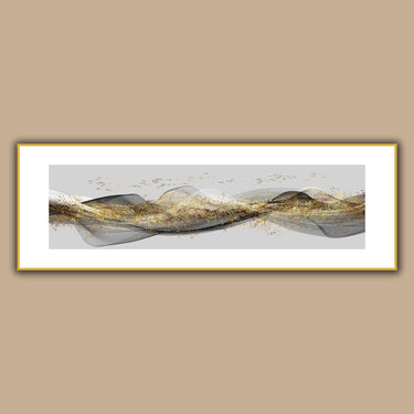 Почувствуйте очарование УФ-печати, создающей эффект золотой ленты, горизонтально струящейся по холсту. Яркий блеск и тщательная проработка деталей создают динамичный визуальный образ, сочетающий изысканность и элегантность. Игра света на золотой поверхности добавляет нотку роскоши, превращая это произведение искусства в яркий центр внимания в любом пространстве.