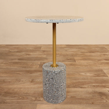 Этот приставной столик, подходящий для места рядом с любимым креслом или уютным диваном, изготовлен из терраццо и металла. Игра промышленной латуни на фоне блеска терраццо выявляет лучшее из обоих материалов, придавая современный вид вашему жилому пространству.