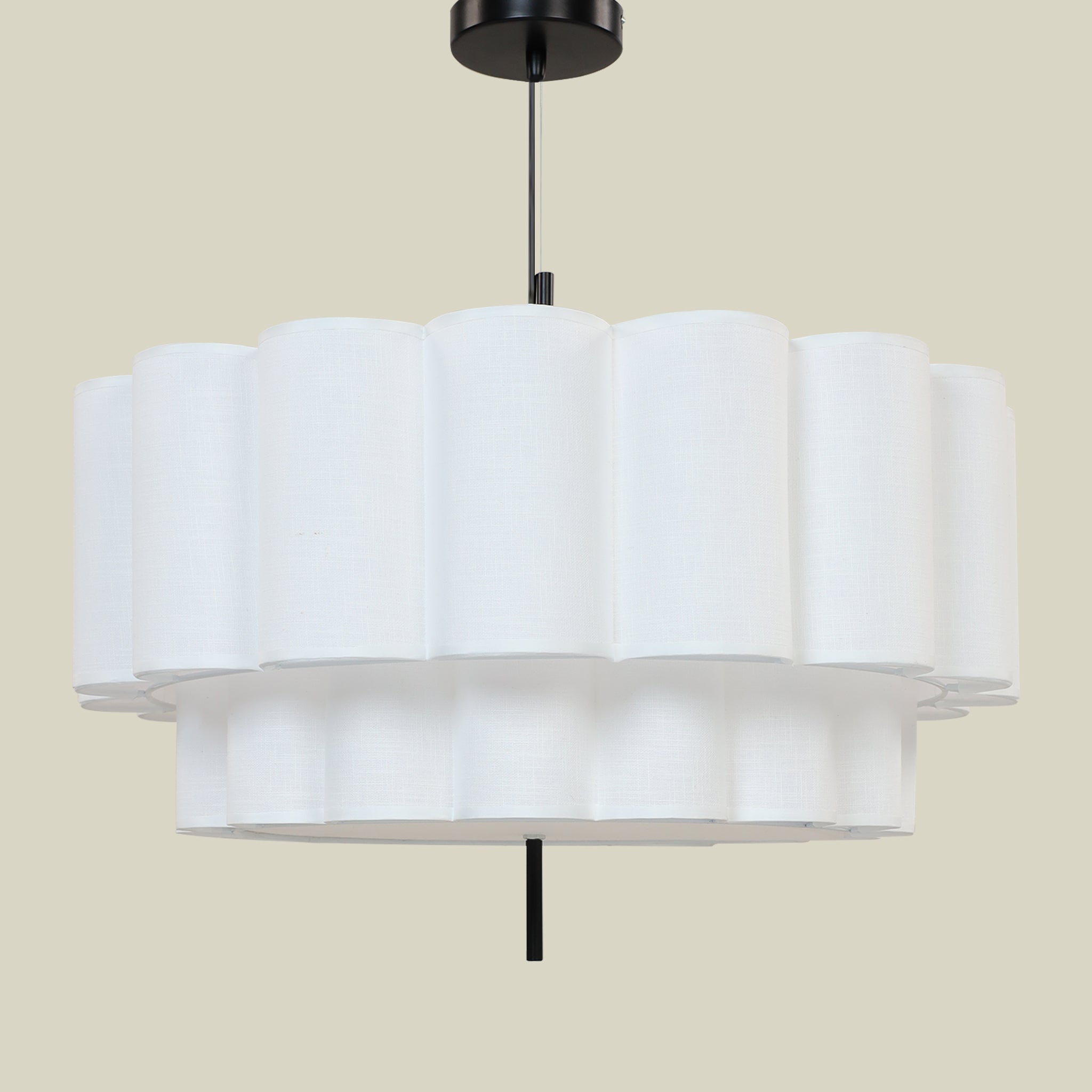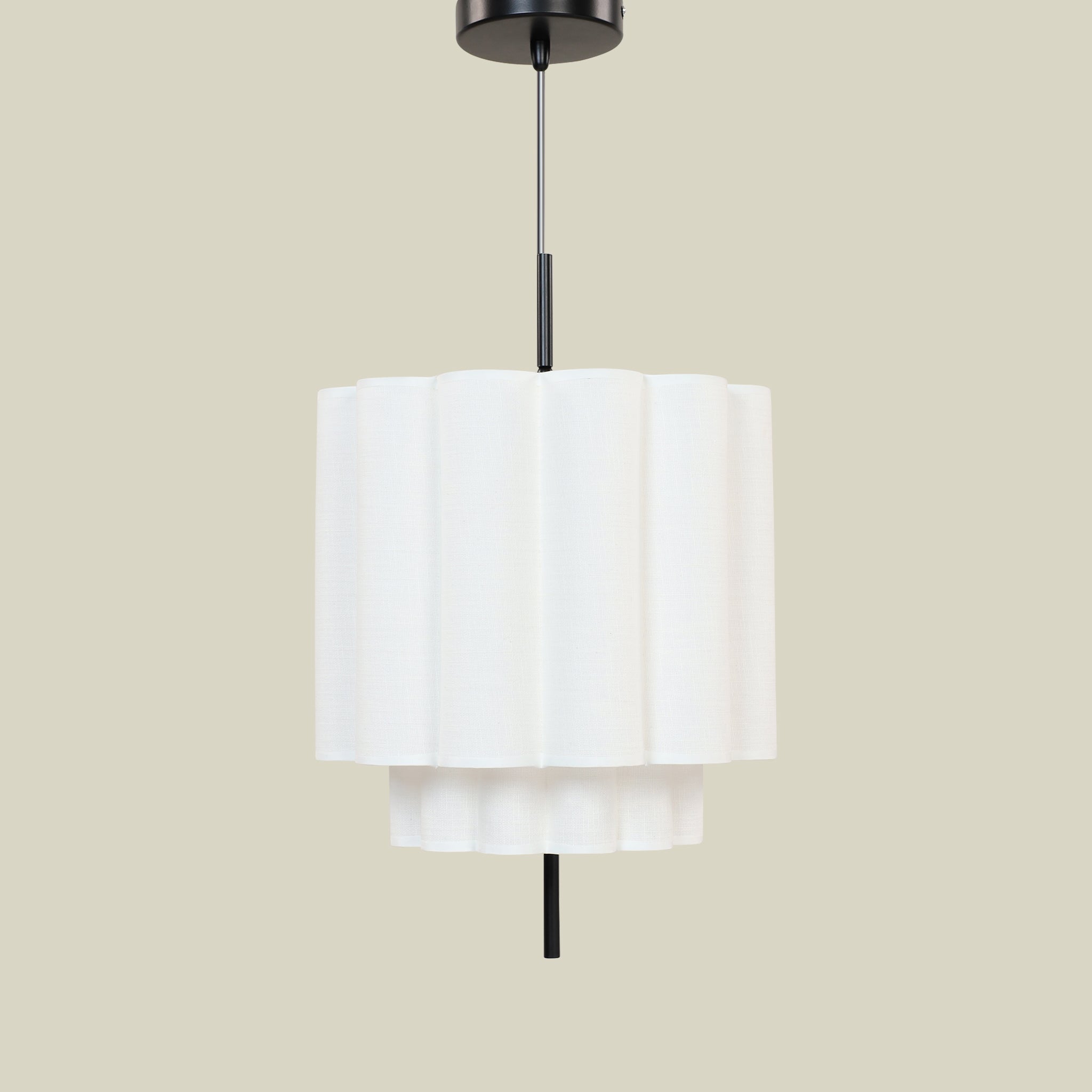Wrapped in soft fabric and finished in pristine white, it casts a gentle, diffused light that's perfect for creating cozy atmospheres.