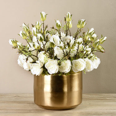 Композиция из искусственных роз в золотой вазе