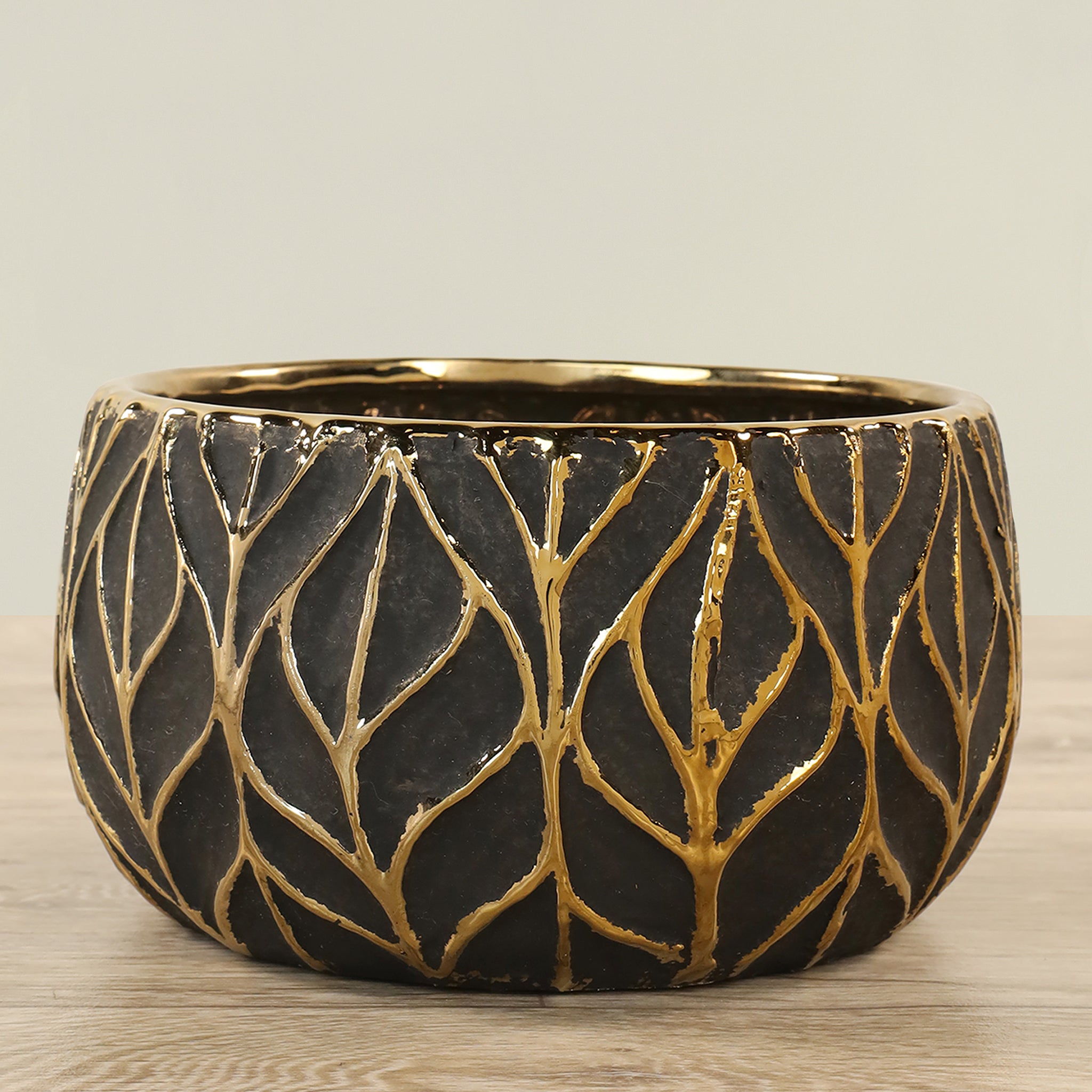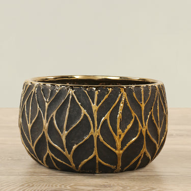Украсьте свой интерьер этим круглым керамическим горшком матово-черного цвета, который станет изысканным дополнением к любому домашнему декору.