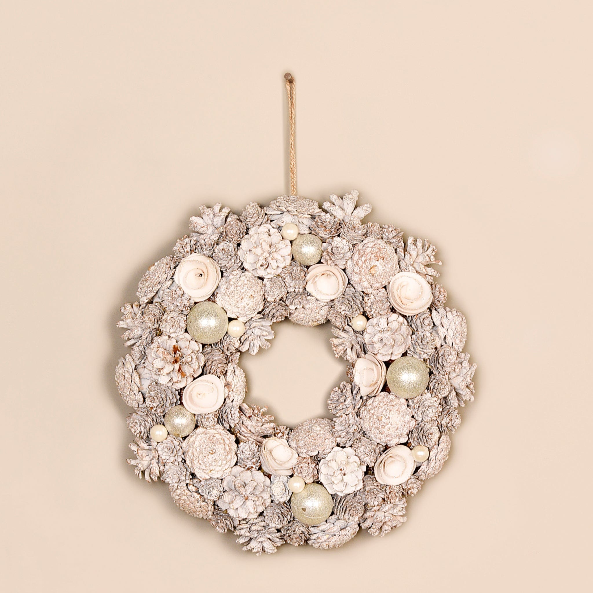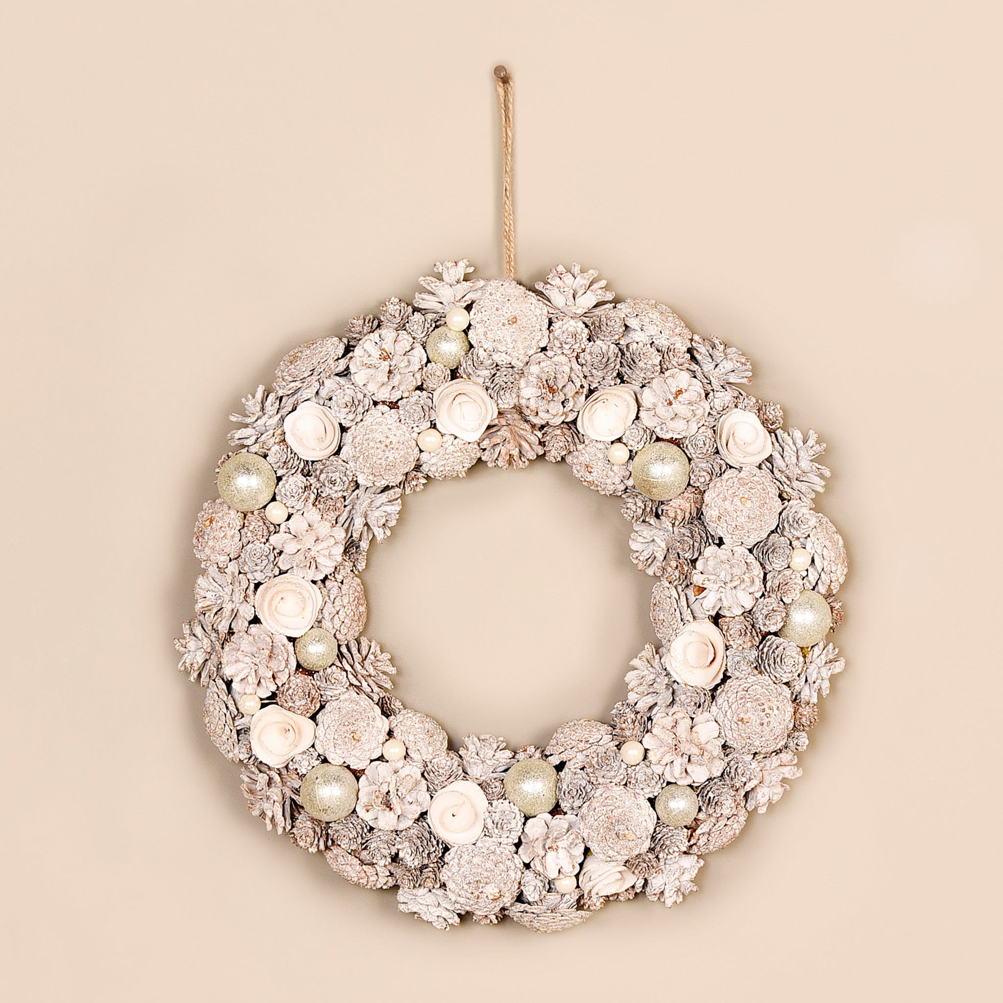'Это сезон для демонстрации красивых венков, таких как этот, на вашей входной двери. Этот снежный венок с однотонными шишками, украшениями и цветами заставит вас мечтать о белом Рождестве.